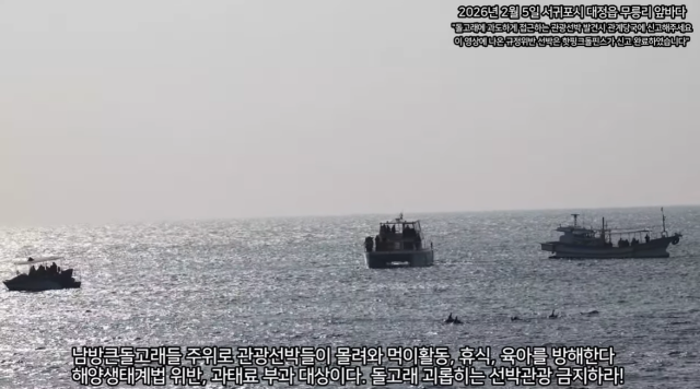 이 단체는 또 "같은 해역에서 선박 3척이 관광하고 있는 가운데, 스트레스를 받은 돌고래 한 마리가 수면 위로 뛰어 올라온 모습이 관찰됐다"며 영상과 사진을 공개했다.