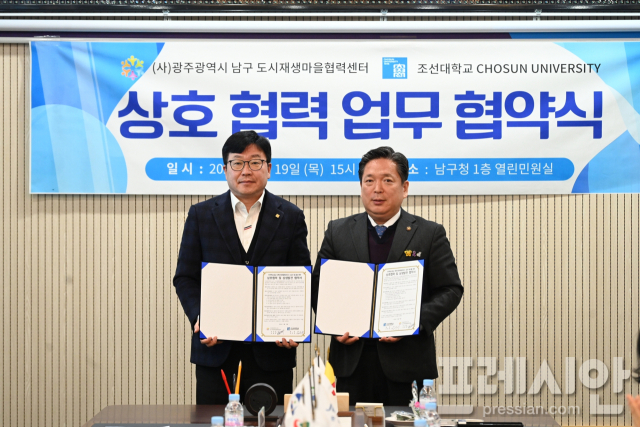 (사)광주광역시 남구도시재생마을협력센터와 조선대학교는 19일 '지역혁신중심 대학지원체계(RISE)' 사업의 성공적인 추진과 지역 상생발전을 위한 상호 협력 협약(MOU)을 체결했다.