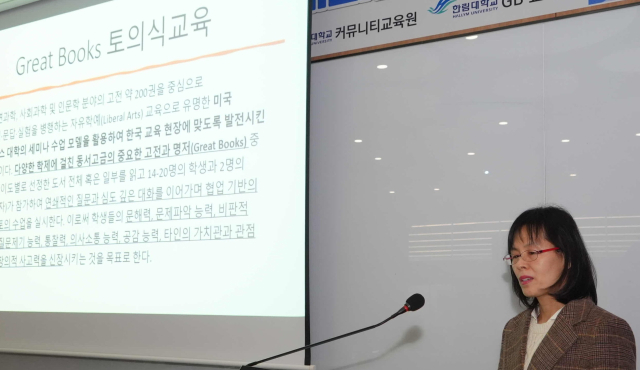 한경민 교수는 "독서교육이 중요하다는 인식하에 전국적으로 다양한 시도가 이루어지고 있지만 정작 어떤 책을, 어떻게 읽는 것이 필요한가에 대한 논의는 부족한 것 같다"며 “춘천시가 GB 교육을 확산하려면 무엇보다 교사들이 고전 중심 세미나 수업에 직접 참여해 학생을 지도할 역량을 갖추는 튜터 양성이 선행돼야 한다”고 강조했다.