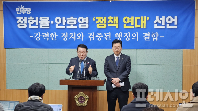 한편 이날 기자회견에서 안호영 국회의원과 정헌율 익산시장은 도지사 선거를 앞두고 정책 연대를 선언했다. 두 사람은 중앙 정치와 지방 행정을 결합해 전북의 산업·경제 구조 전환을 함께 추진하겠다는 구상을 밝혔다.