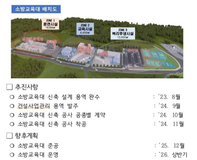 또 올해부터 착공되는 소방교육대 생활관에도 총사업비 110억원이 투입된다.