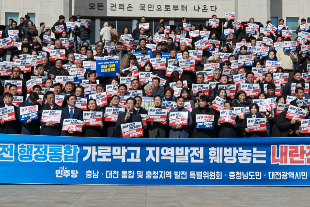 더불어민주당 대전지역 정치권이 24일 ‘대전·충남 행정통합 특별법’ 처리 보류와 관련해 일제히 국민의힘을 규탄하고 나섰다.