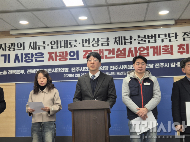 이들은 "전주시는 지난해 9월 29일 (주)자광의 주택건설사업계획을 조건부승인해 6조4000억 원 규모 사업에 대한 인허가 절차가 시작됐다"며 "그러나 자광은 시공사를 구하지 못한 채 해를 넘겼고 재산세, 공유재산 임대료, 변상금을 체납한 상태"라고 밝혔다.