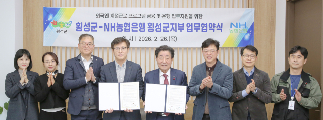횡성군은 26일 NH농협은행 횡성군지부와 ‘외국인 계절근로자 금융 및 은행 업무지원을 위한 업무협약(MOU)’을 체결했다.