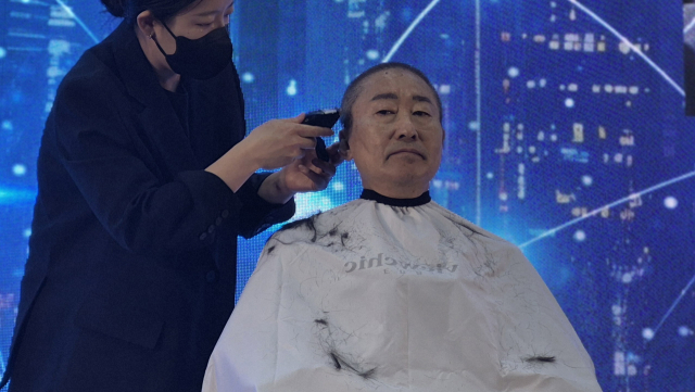 발언을 마친 박 의원은 무대 위에 준비된 의자에 앉아 즉석에서 삭발을 단행했다.