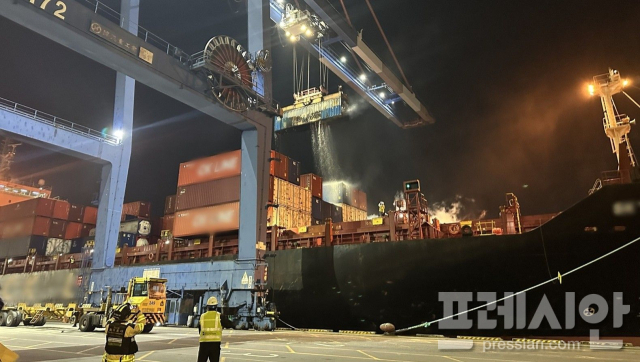부두 접안 완료 후 소방과 함께 발화 컨테이너 소화작업을 실시 했으며, 선박에서 육상 안전지대로 이동조치 및 개방 후 진압 작업을 펼쳐 같은날 오후 8시쯤 완전 진화했다.