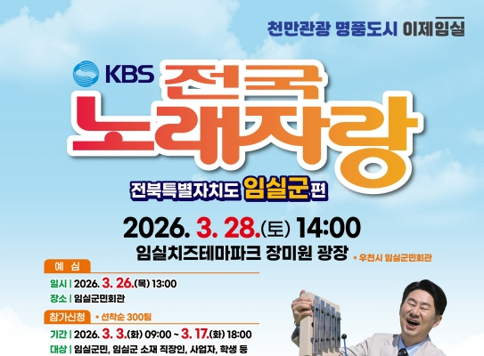 'KBS 전국노래자랑 임실군'편이 오는 28일 오후 2시 전북 임실 치즈테마파크 장미원 광장에서 열린다.