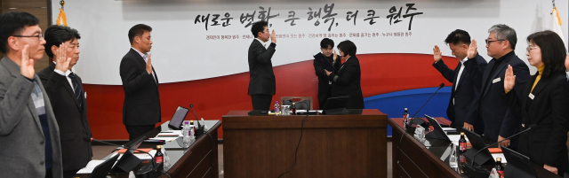 원주시는 지난 3일 시청 대회의실에서 원강수 시장과 간부공무원 등 120여 명이 참석한 가운데 ‘2026년 간부공무원 청렴실천 결의대회’를 개최했다.