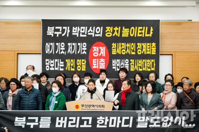 지역에서도 반발이 터져 나왔다. 북구 유권자들로 구성된 바른정치연대는 5일 오전 부산시의회에서 기자회견을 열고 "박민식 전 의원은 즉각 북구에서 떠나라"며 박 전 장관의 정치 행보를 반대하고 나섰다.