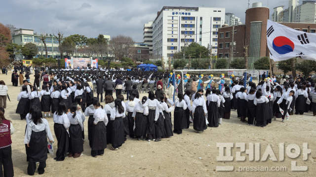 행진의 대미는 양림오거리에서 수피아여고 학생 200여명이 선보인 대형 플래시몹이 장식했다. 학생들은 '우리의 다짐'을 제창하며 3·10 만세운동의 정신을 오늘에 되살리겠다는 굳은 의지를 보여줬다.