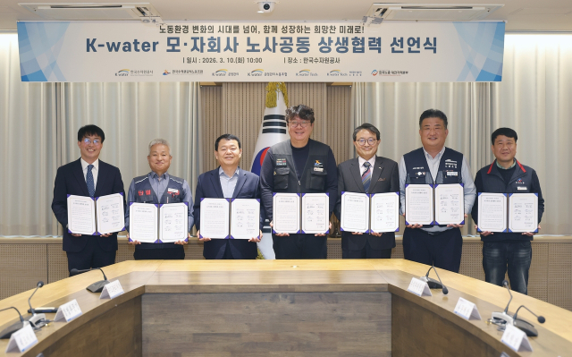 한국수자원공사는 자회사인 케이워터운영관리, 케이워터기술주식회사와 함께 ‘노동환경 변화의 시대를 넘어, 함께 성장하는 희망찬 미래로’를 구호로 내걸고 ‘모·자회사 노사공동 상생협력 선언식’을 개최했다고 10일 밝혔다.