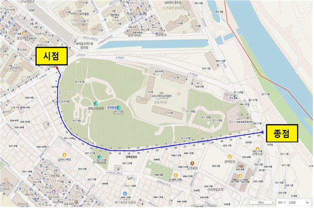 ‘검배공원로’는 해당 도로가 위치한 검배근린공원 인근 지역의 특성을 반영한 것으로, 구리시는 도로명 부여를 위해 주소정보위원회 심의 등 관련 절차를 거쳐 도로명을 확정했다. 향후 해당 구간에 도로명판 등 주소정보시설을 설치하고 건물번호를 부여하는 등 시민들이 주소 사용에 불편이 없도록 정비를 추진할 계획이라고 밝혔다.