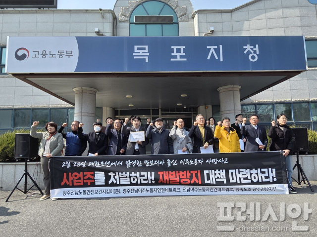 지난 2월 말 전남 영암 D조선에서 또 한 명의 캄보디아 출신 이주노동자가 목숨을 잃은 사건과 관련해 지역 노동·인권단체들이 "예견된 인재이자 구조적 살인"이라며 원청과 당국의 책임을 묻는 집단행동에 나섰다.