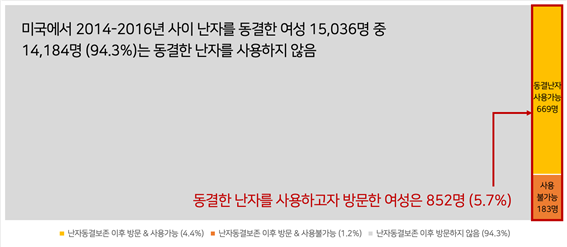 하지만 난자동결보존 이후 실제로 동결한 난자를 사용하는 비율은 생각보다 높지 않았다. 2014년부터 2016년 사이 난자를 동결한 여성 15,036명을 2021년까지 추적 관찰한 결과, 병원에 다시 방문해서 동결난자를 사용한 비율은 약 5.7%(852명)에 그쳤다. 또한 동결난자 사용을 원하는 여성 852명 중 약 78.5%(669명)는 이식할 수 있는 난자를 얻었지만, 나머지 21.5%(183명)는 해동 후 사용할 수 있는 난자가 없었다. 그래도 한 가지 희망적인 것은 동결난자를 해동해 임신을 시도했을 때의 성공률이 일반적인 체외수정과 비교해 크게 다르지 않은 수준이었다는 점이다.