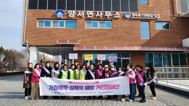 경기 양평군은 지난 16일 양서면 전통시장 일대에서 가정폭력·성폭력 예방을 위한 거리 캠페인을 실시했다고 17일 밝혔다.