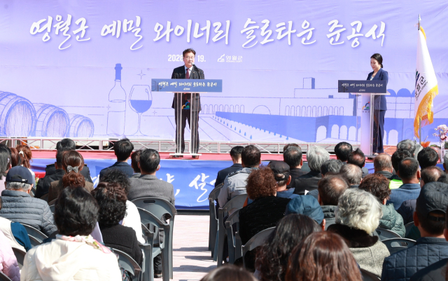 영월군은 지역 특산품인 포도를 활용한 와인산업의 체계화와 체험형 관광자원 조성을 위해 ‘예밀 와이너리 슬로타운’을 조성하고 19일 준공식을 개최했다.