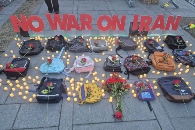 집회에 참여한 시민과 무대 사이에는 붉은 장미꽃이 올려진 책가방과 182개의 촛불이 놓였다. 미국과 이스라엘의 이란 초등학교 공습으로 목숨을 잃은 학생과 교사들을 추모하기 위한 것이었다.