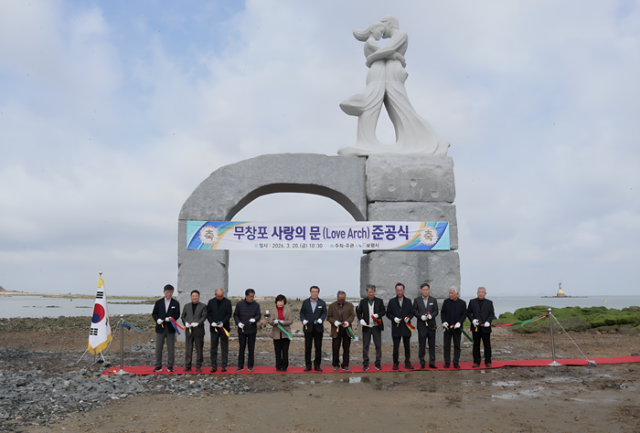 이번에 준공된 조형물의 명칭은 국민 참여 공모를 통해 선정된 ‘무창포 사랑의 문(Love Arch)’으로, 석대도와 육지 사이의 바닷길이 열리는 신비로운 찰나와 바다의 강인한 생명력을 아치형으로 형상화했다.