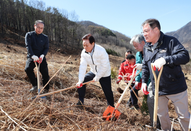 박완수 경남도지사는 20일 산청군 시천면 산불피해지에서 '2026년 봄철 나무심기 행사'를 열고 훼손된 산림의 조속한 복구와 산불 예방의 중요성을 강조했다.