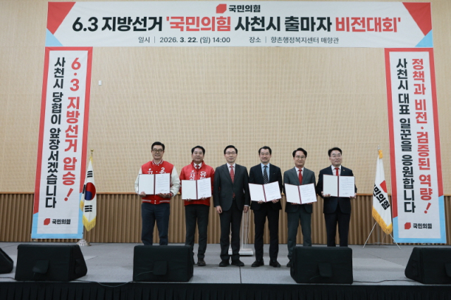 국민의힘 경남 사천시 당원협의회는 6.3 지방선거를 앞두고 22일 사천시 향촌행정복지센터 매향관에서 1000여명의 책임당원들이 참석한 가운데 선출직 공직 후보자로 도전할 출마예정자들의 정견발표회를 듣는 '당원초청 비전대회'를 가졌다.