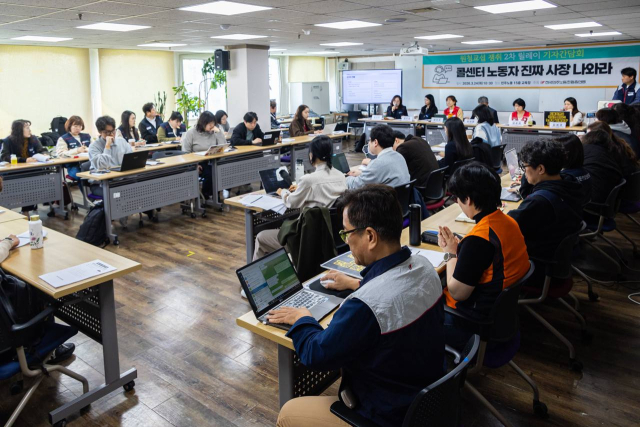 전국민주노동조합총연맹은 연맹 소속 콜센터 노동자들과 함께 24일 서울 중구 민주노총 교육장에서 원청교섭 쟁취 기자간담회를 열고 이같이 밝혔다.