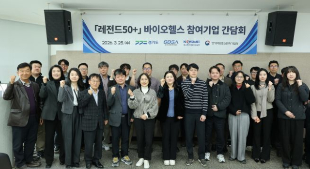 경기도경제과학진흥원은 25일 수원 광교테크노밸리 경기 R&DB센터에서 ‘레전드50+ 2.0’ 참여기업의 애로사항을 청취하고 향후 지원 방향을 공유하는 간담회를 개최했다고 밝혔다.