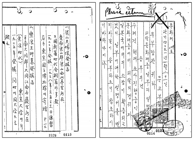 ▲ 피탈문화재 중 일부의 설명서. ⓒ 한일회담 관련 한국외교문서