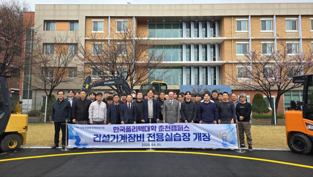 정부 산하 국책기술대학인 한국폴리텍Ⅲ대학(학장 지경배) 춘천캠퍼스가 건설기계 분야 전문 인력 양성을 위해 우두동 제2캠퍼스에 ‘건설기계장비 전용실습장’을 구축하고 1일 개장식을 개최했다.