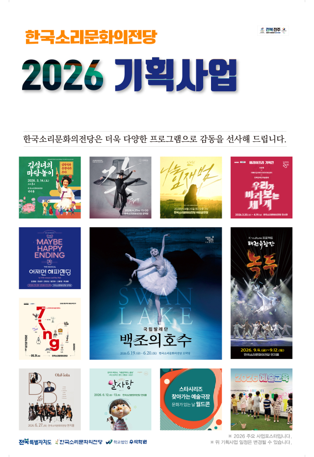 지난해 약 34만명 관람객이 찾은 한국소리문화의전당이 올해 예술·대중·지역을 중점으로 70건 기획사업을 추진해 전북 관광 활성화에 힘을 보태겠다는 계획을 내놨다.