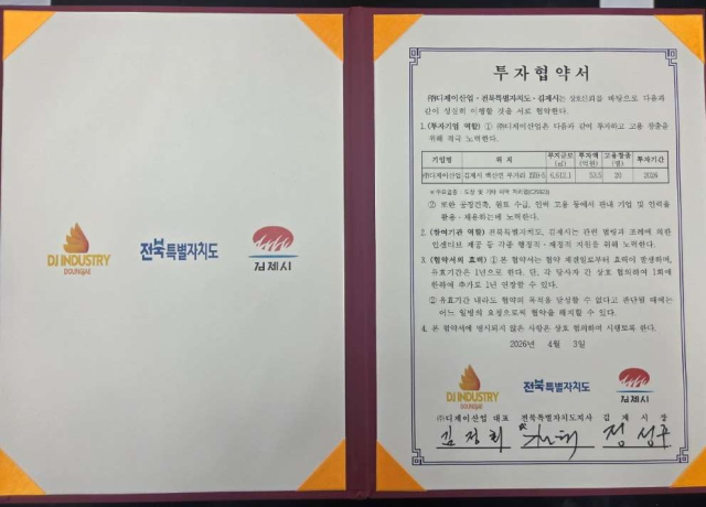 정성주 김제시장은 “이번 투자는 기업 간 연계를 통한 산업단지 집적화 효과를 높이고 신속한 투자 이행으로 미착공 부지의 가동률을 높여 산단 활성화에 기여할 것으로 기대된다”고 밝혔다.