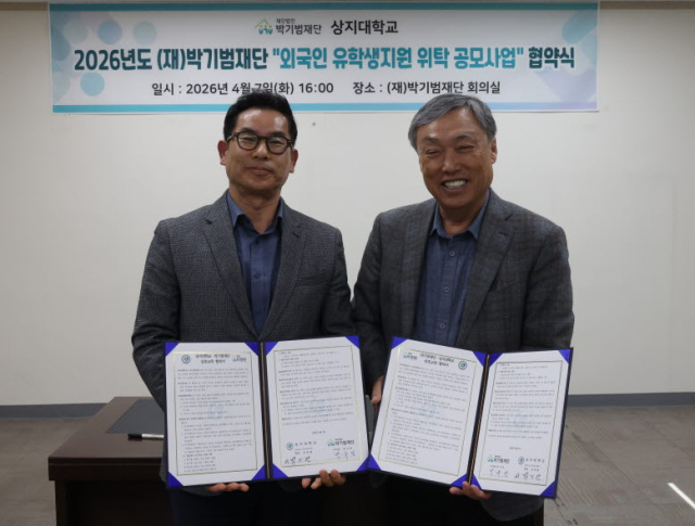 상지대(총장직무대행 박기관)는 7일 (재)박기범재단 회의실에서 ‘2026년도 외국인 유학생지원 위탁공모사업’ 협약식을 개최하고 외국인 유학생 지원을 위한 협력 체계를 구축했다.