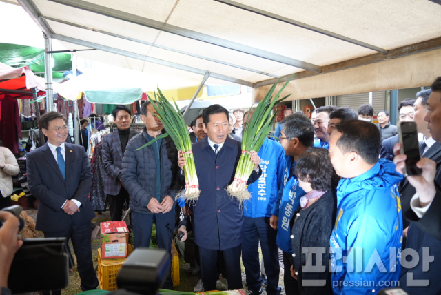 정 대표는 4000원짜리 대파 한단을 5000원에 팔라며 좌파, 우파, 양쪽에 양파라고 농담을 건네기도 했다.