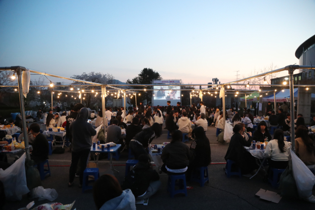축제는 일송체육관 앞 주차장에서 오후 6시부터 약 3시간 정도 진행됐으며, 간식과 음료를 즐기며 자유롭게 이야기를 나눌 수 있는 ‘테이블존’, 영화 ‘비긴어게인’을 감상할 수 있는 ‘영화존’으로 구성됐다.