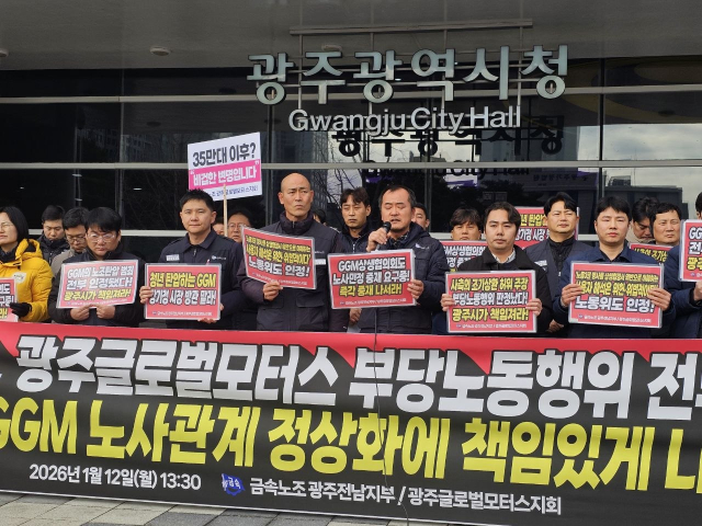 ※금속노조 광주전남지부 광주글로벌모터스지회는 지난 10일에도 4시간 경고파업을 진행했다. 노동위원회의 부당노동행위 판정이 있었음에도 사측이 노조 홍보물을 무단 철거하는 등 쟁의행위 방해가 계속되고 있는 것이 이번 경고파업의 배경이라고 한다.