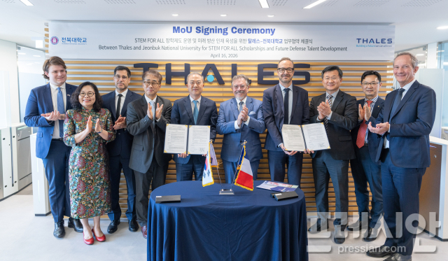 전북대는 16일 탈레스와 양해각서(MOU)를 체결하고, 과학·기술·공학·수학(STEM) 기반 인재 육성과 산학협력 확대를 위한 중장기 협력체계를 구축했다고 밝혔다.