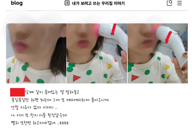 제품 사용 후기 형식을 취하면서 특정 제품의 기능과 효과를 강조하는 내용이 반복적으로 등장하는 등 전형적인 광고성 콘텐츠 양상을 보이고 있다.