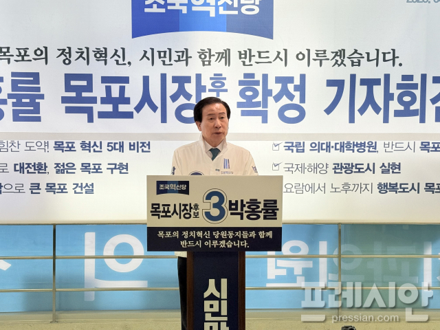 박홍률 예비후보가 21일 선거사무소에서 조국혁신당 후보 확정 기자회견을 열고 6·3 지방선거 본선 승리와 지방정치 개혁 의지를 공식 선언했다.
