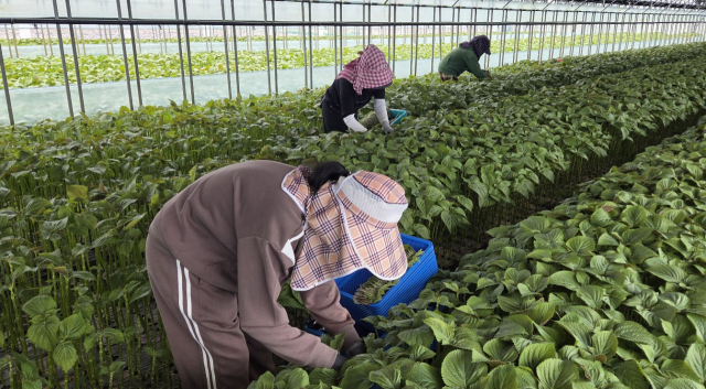 밀양 부북면의 한 시설깻잎 농가 비닐하우스에서는 외국인 근로자들이 작업을 이어가고 있지만 농장주의 표정은 어둡다. 이 농가는 "인건비를 제하고 나면 오히려 손해가 나는 구조"라며 어려움을 토로했다.