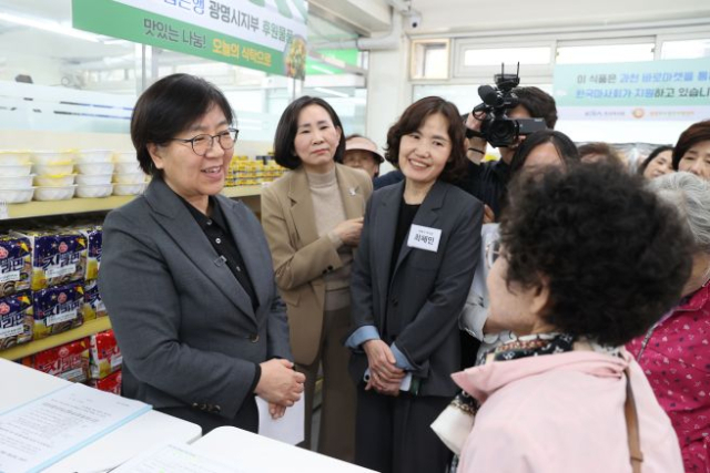 21일 광명시에 따르면 최혜민 시장 권한대행(부시장)은 이날 광명푸드뱅크마켓센터를 방문한 정은경 보건복지부 장관과 함께 사업 운영 현장을 점검하고, 위기가구 발굴을 위한 시의 선제적 복지체계를 소개했다.