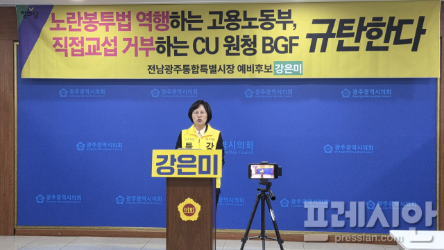 강은미 정의당 전남광주통합특별시장 예비후보가 진주 CU 물류센터에서 발생한 화물노동자 사망 사고와 관련해 "단순 교통사고가 아니라 교섭을 거부한 원청 BGF리테일과 노동자의 권리를 외면한 고용노동부가 만들어낸 비극"이라고 규정하며 양측의 책임 있는 자세를 강력히 촉구했다.