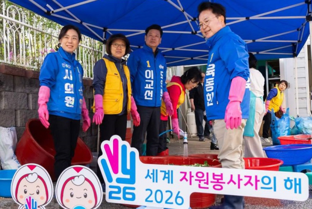 육 후보는 자원봉사자들의 땀방울 맺힌 손을 일일이 맞잡으며 고마움을 전하면서 정성껏 버무려진 김치가 이웃들의 밥상 위에 오를 생각에 환한 미소를 지었다.