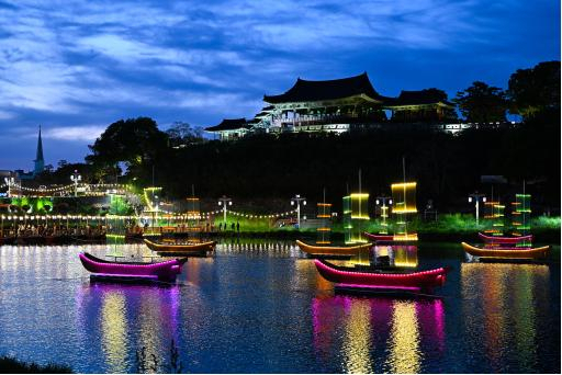 강 위에는 어화 돛단배의 은은한 불빛이 흐르며 수면을 따라 장관을 연출했고 이를 배경으로 펼쳐진 불꽃이 밤하늘을 수놓았다.