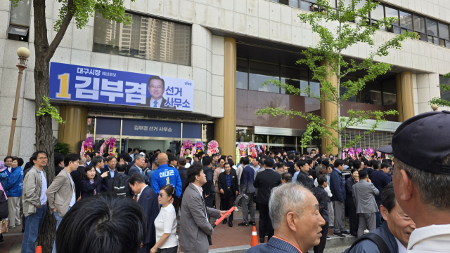 김부겸 더불어민주당 대구시장 예비후보(이하 김 후보)의 선거사무소 개소식이 열린 달서구 두류네거리에 위치한 ‘김부겸 희망캠프’ 건물 3개층은 물론 주변 도로까지 약 5천 명(캠프 자체 추산)의 지지자들이 모여 북새통 그 자체였다.