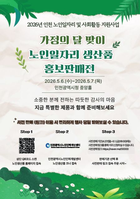 인천광역시가 올해 노인일자리 사업을 확대 운영하고, 5월 가정의 달을 맞아 어르신들이 직접 제작한 생산품을 선보이는 홍보·판매 행사를 개최한다.