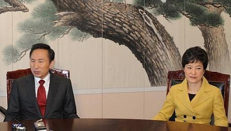 | ▲ 이명박 대통령과 박근혜 새누리당 비상대책위원장의 2008년 회동 모습 ⓒ청와대 |
