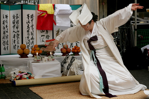 | ▲ 장자연 씨는 스스로 목숨을 끊었지만, 그가 죽음으로 고발한 '침묵의 카르텔'을 깨는 일은 남은 자들의 몫이다. 사진은 지난 11월 여성단체 '침묵을 깨는 아름다운 사람들'이 장자연 씨의 넋을 기리기 위해 조최한 씻김굿 행사. ⓒ프레시안 (사진=최형락 기자) |