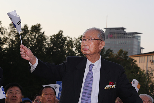 | ▲ '조선인 토벌 부대' 출신인 백선엽 씨는 보수 언론으로부터 '6.25전쟁 영웅'으로 불리고 있다. 사진은 재향군인회 행사에 참석한 백선엽 씨. ⓒ프레시안(최형락) |