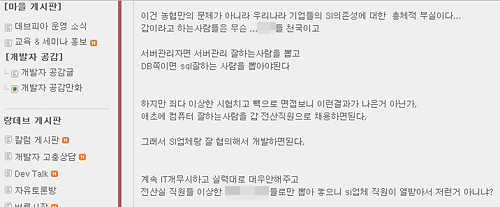 | ▲개발자 커뮤니티 '데브피아'에 올라온 한 개발자의 비판글. ⓒ데브피아(http://www.devpia.com) 스크린 캡처 |