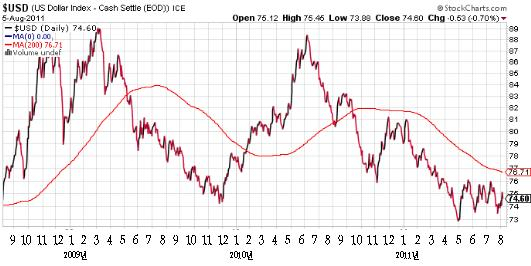 그런데 오바마 행정부는 조만간 '3차 양적 완화'에 나설 것이 확실시된다. 경기부양책을 발표할 예정이라는데, 경기부양에 쓸 자금이 마땅치 않기 때문이다. 지난 7월 말, 오바마 행정부와 의회는 재정적자 감축을 위해 재정지출을 줄이기로 합의한 바 있다. 따라서 결국 달러화를 대량으로 찍어서 시중에 공급하는 방식 외에 마땅한 대안이 없는 상황이다. 3차 양적 완화가 시작되면 달러화 거품이 빠지기 시작할 것이고, 이 과정에 속도가 붙으면 무슨 일이 벌어질지 유럽을 보면 알게 될 것이다.