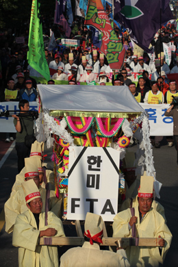 근 6년을 끌어온 한·미 자유무역협정(FTA)이행법안이 미의회에 상정되었다. 나는 그동안 한·미FTA를 반대하는 이유를 드물지 않게 밝혀왔다. 하지만 이행법안이 상정된 이 시점에서 그것은 또 다른 무게로 다가온다. 아무리 생각해도 반대할 수밖에 없는 이유로 나는 다음을 들겠다.